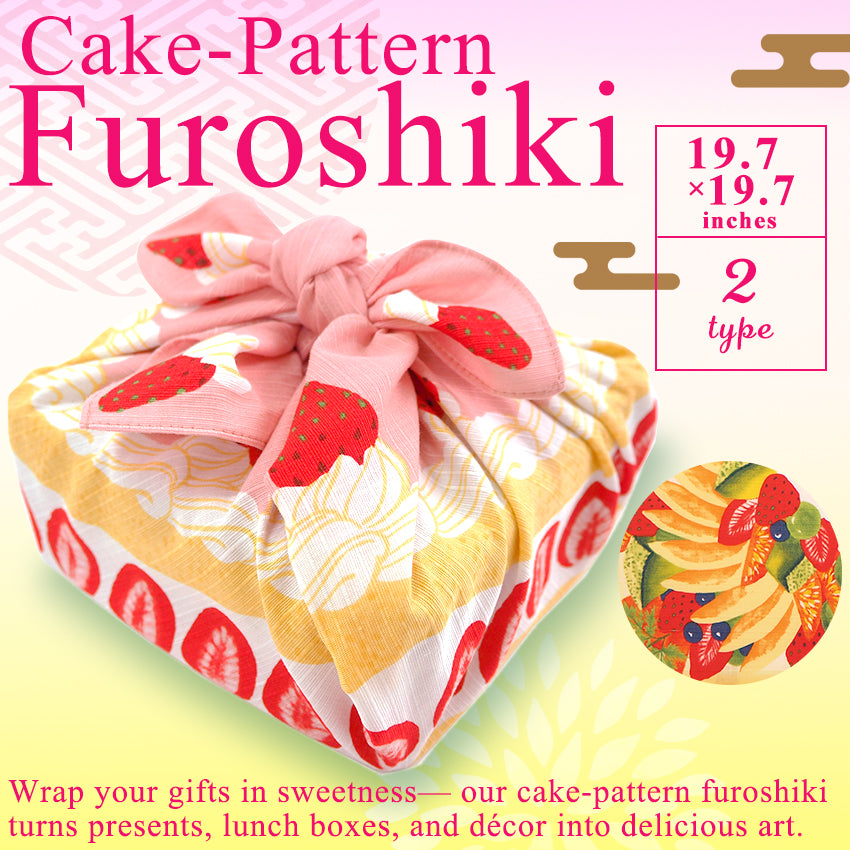 Japanese Cake Print Furoshiki – Cotton Wrapping Square 19.7 in × 19.7 in (50×50 cm), Strawberry Shortcake & Fruit Cake Prints Eco Gift Wrapper, Bento Wrap & Decorative Cloth (50×50 cm)