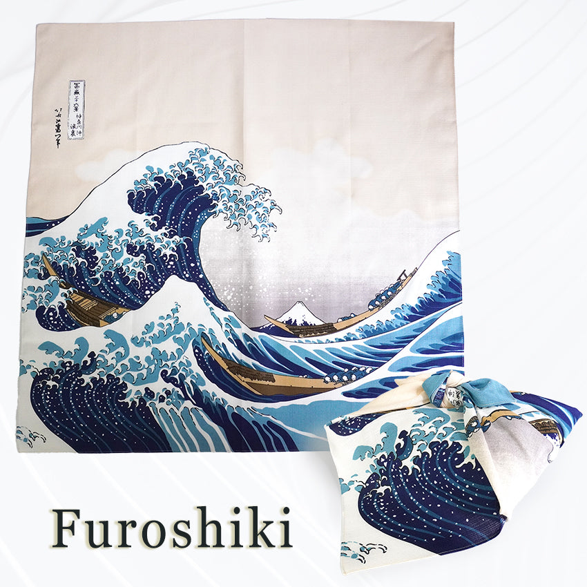 One of the world’s most iconic artworks, Hokusai’s Great Wave is beautifully reproduced on this furoshiki. Featuring Mt. Fuji beneath crashing waves, it’s a bold expression of nature and strength – perfect for art lovers and travelers alike.