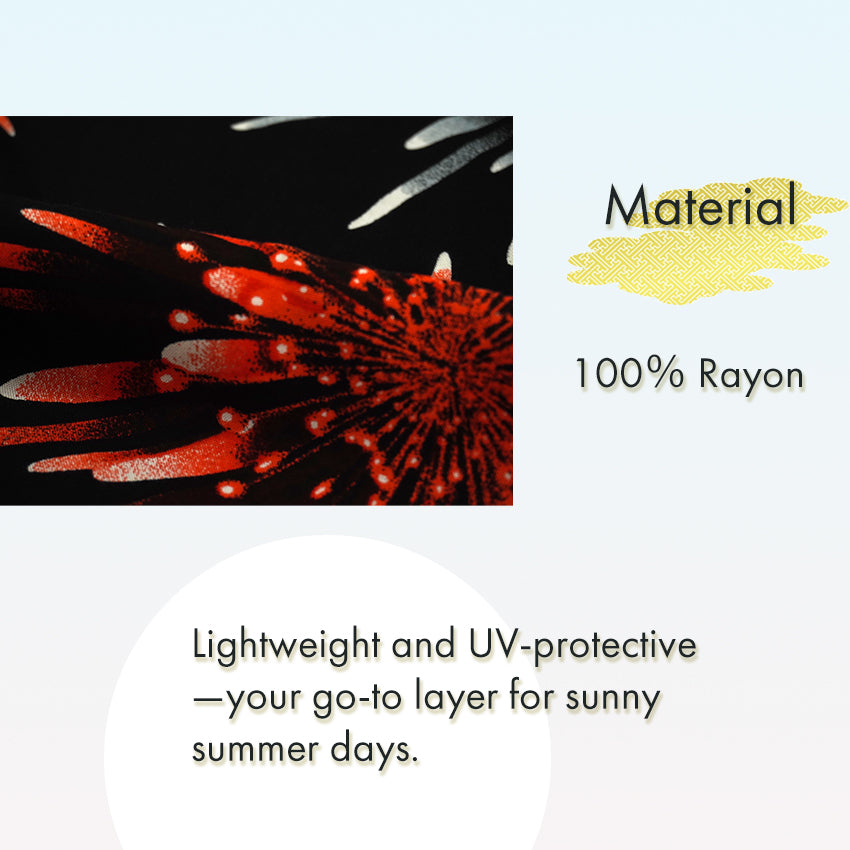 Soft rayon fabric offers a light, cool touch against the skin, while the vibrant bursts of color evoke the magic of a summer night sky. This elegant piece blends nostalgic tradition with a modern silhouette—perfect for both casual and semi-formal looks.