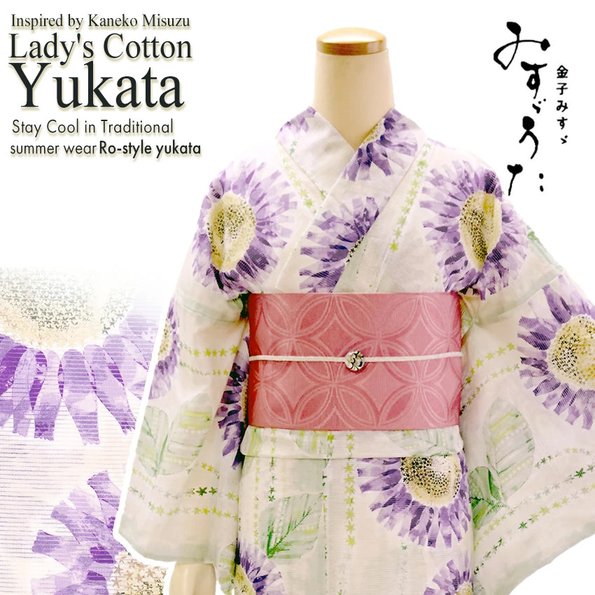 Lightweight Cotton Yukata for Women, chic purple sunflower pattern– Inspired by Kaneko Misuzu’s Poetry, Summer Japanese Kimono Robe