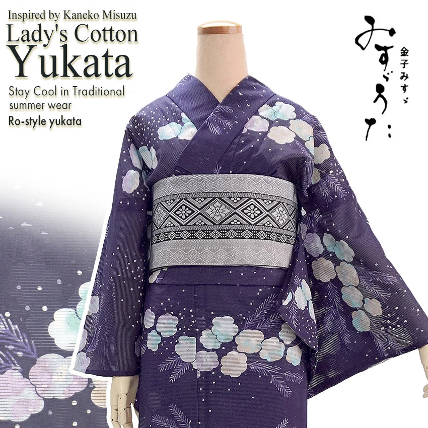 Lightweight Cotton Yukata for Women, Purple base, Crisp geometric snowflakes, Flower pattern – Inspired by Kaneko Misuzu’s Poetry, Summer Japanese Kimono Robe