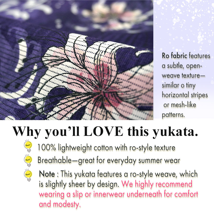 Lightweight Cotton Yukata for Women, Purple base, Spider lilies Flowers pattern– Inspired by Kaneko Misuzu’s Poetry, Summer Japanese Kimono Robe