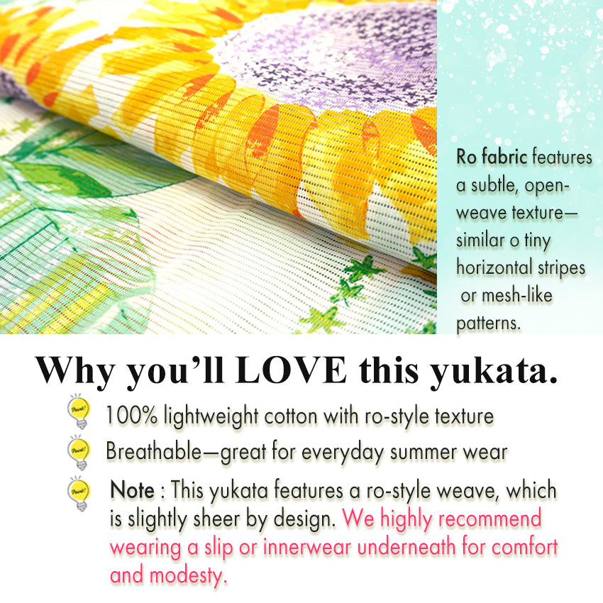 Lightweight Cotton Yukata for Women, Yellow Sunflower pattern– Inspired by Kaneko Misuzu’s Poetry, Summer Japanese Kimono Robe