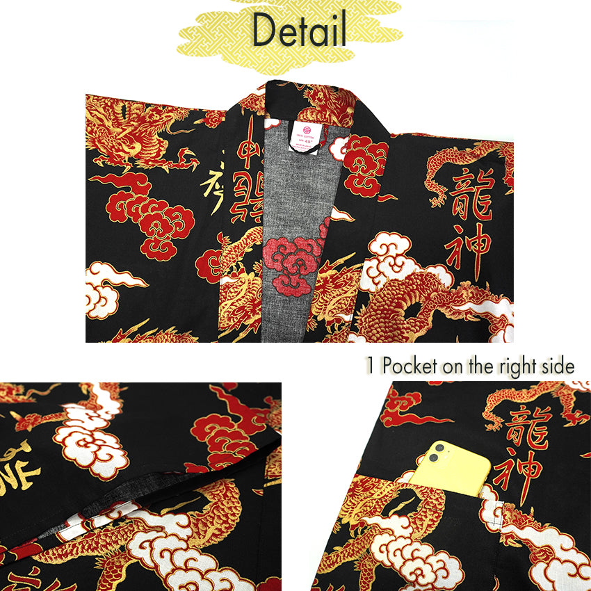 The combination of mythical power and heavenly elements makes this happi coat a true statement piece rooted in tradition and hope.