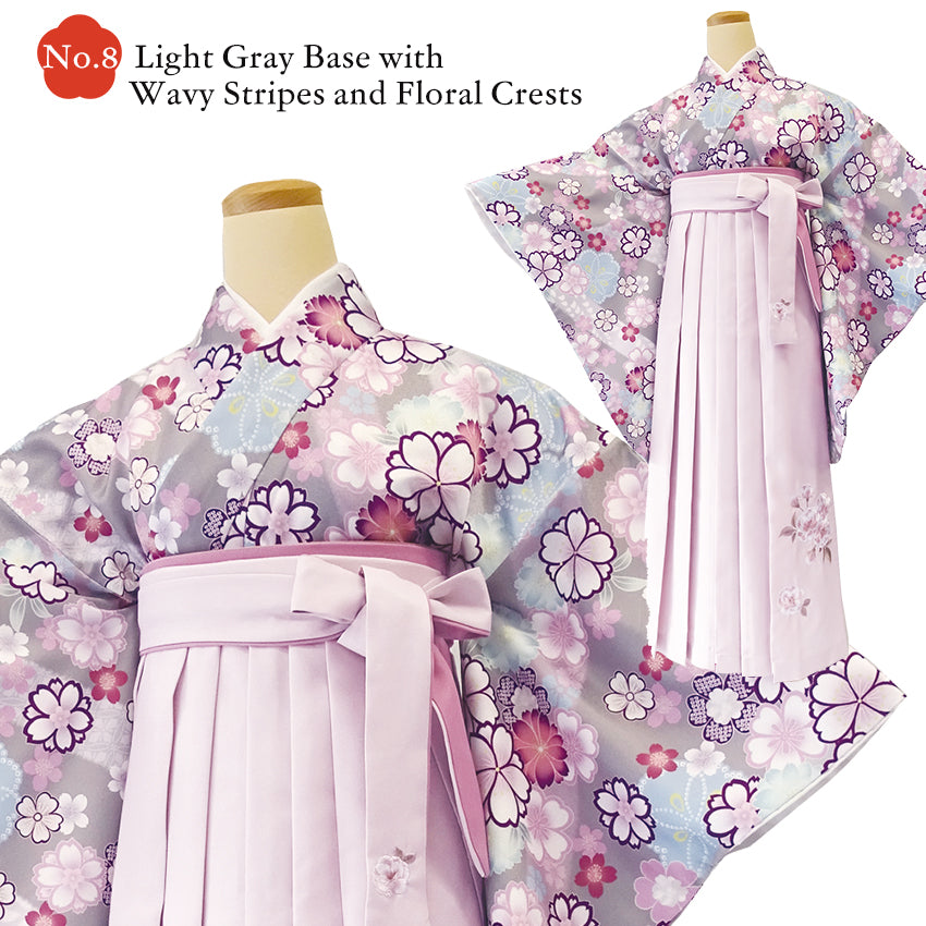 No.8 Light Gray Base with Wavy Stripes and Floral Crests