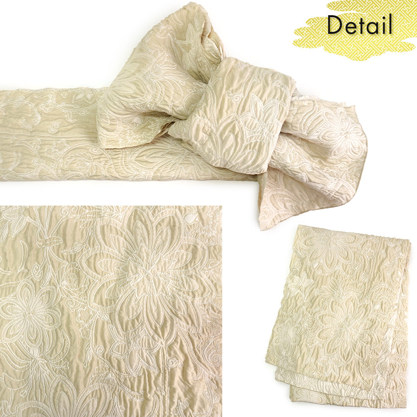Adorned with large floral patterns and traditional motifs, this sash combines soft, muted colors with refined Japanese aesthetics—perfect for adding a grown-up, relaxed elegance to your look.