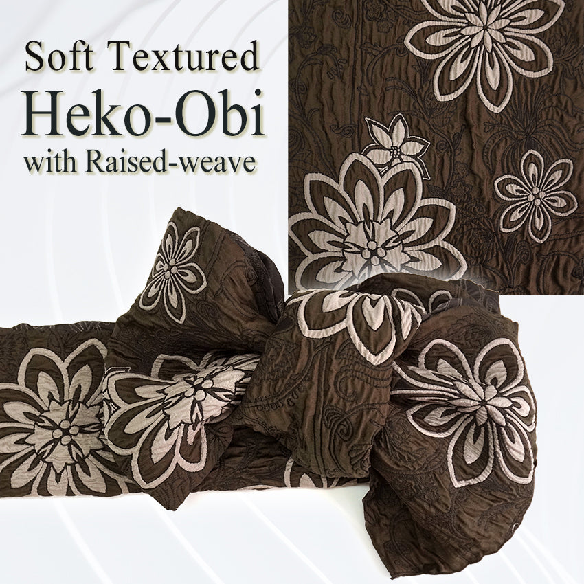 Light, airy, and effortlessly elegant—this heko obi features a beautifully textured jacquard weave that gives volume without weight, making it easy to tie and stunning from every angle.